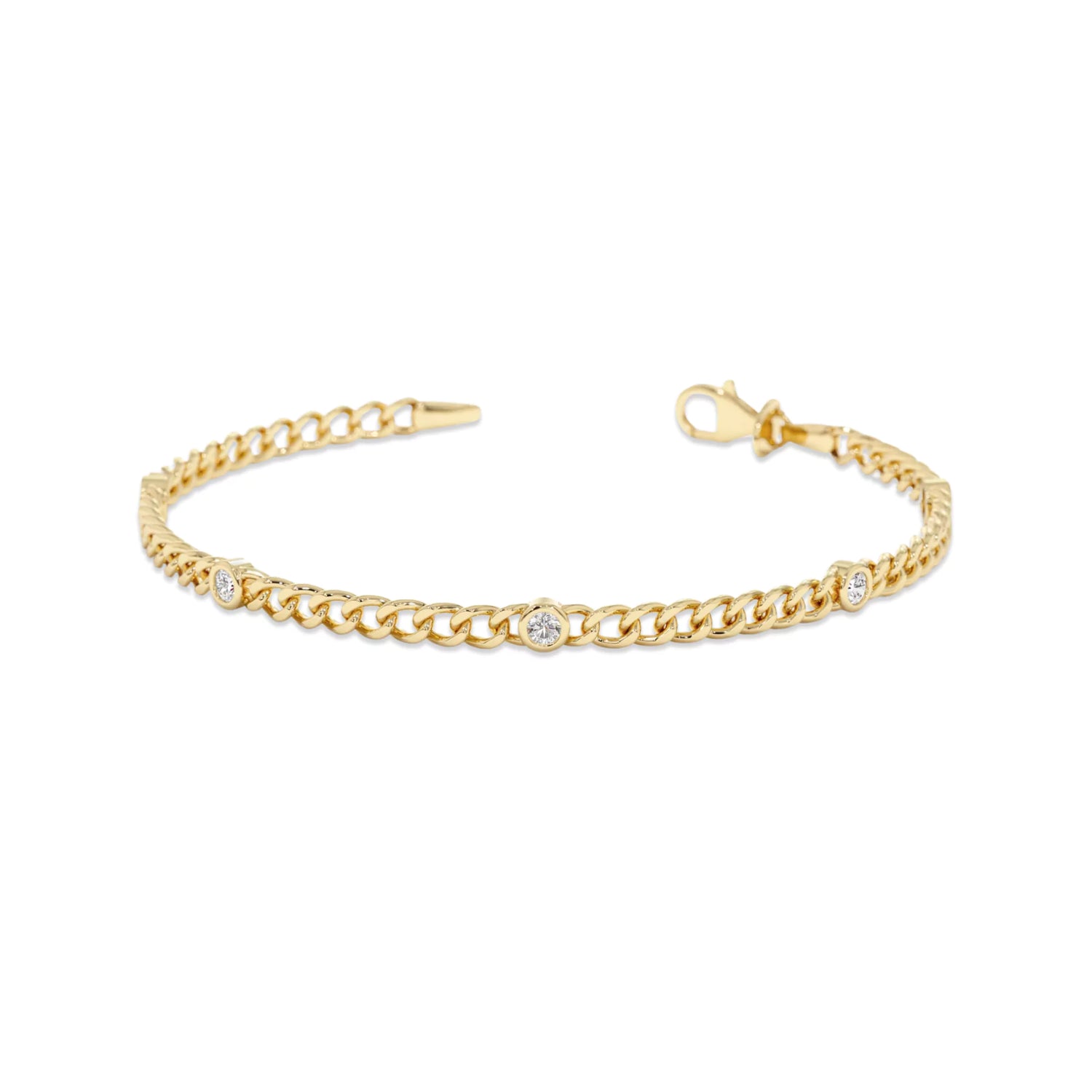 Cuban armbånd i gult gull med diamant kombinerer solid håndverk med glitrende finesse. Armbåndet er laget i massivt 14K resirkulert gull og har en klassisk cubansk lenke med 3 mm bredde.